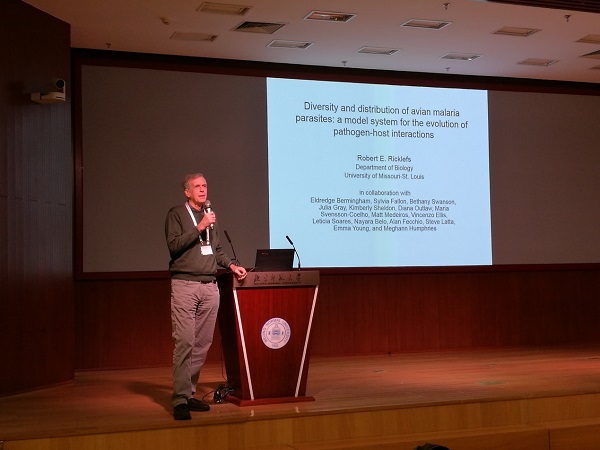 会议的3个大会主题报告是:美国科学院院士、密苏里大学Robert Ricklefs的“Diversity and distribution of avian malaria parasites: a model system for the evolution of pathogen-host interactions”,立陶宛科学院院士、自然科学研究院Gediminas Valkiūnas教授的“Tissue merogony of haemosporidian parasites”,法国国家科学研究中心Ana Rivero教授的“Avian malaria and drug resistance”。9个主题报告是:瑞典隆德大学Staffan Bensch教授的“Parasite host-specificity associations in a multi-host multi-parasite community”,中国农业科学院兰州兽医研究所所长殷宏教授的“Advance on Piroplasmosis in China”, 军事医学科学研究院 赵彤言教授的“The analysis of potential vector species of Plasmodium and related haemosporidian parasites in China”,美国耶鲁大学Choukri Ben Mamoun教授的“Nutrient Uptake and Metabolism in Malaria Parasites”,西班牙高等科学研究会Josué Martínez-de la Puente博士的“Integrating mosquito´s information on avian malaria epidemiology blood feeding patterns and vector capacity”,印度国家科学研究中心Farah Ishtiaq博士的“Hitchhiking Parasites: The Role of Bird Movement, Hypoxia, Immunity and Climate Change on Malaria Transmission”,美国旧金山州立大学Ravinder Sehgal博士的“Avian malaria: tropical deforestation, mosquitoes and genes”,北京动物园贾婷博士的“The study on the diversity, prevalence and distribution of haemosporidiosis in cranes in China”,以及88038威尼斯董路副教授的“The diversity, pravelence and co-infection pattern of Avian malaria parasites in Godlewski's Bunting”。